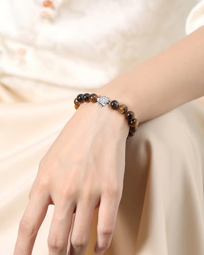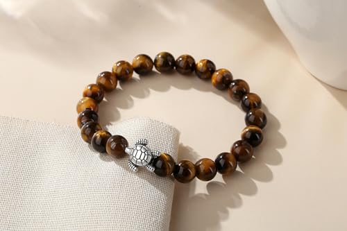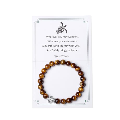 AWARDSEN - سوار خرز شجاع 8 ملم بتصميم سلحفاة للنساء من اووردسن مع قلادة سلحفاة ديكور امنة للسفر هدية للبالغين