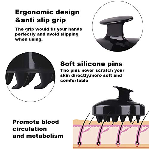 AWCCXMYM - فرشاة شامبو لتدليك فروة الرأس وتنظيفها مع رأس فرشاة من ايه دبليو سي سي اكس ام واي ام، من السيليكون الناعم تحسن الدورة الدموية وعملية الأيض (أسود)
