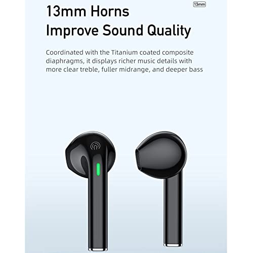- ستيريو عالي الدقة مع عمر بطارية طويل: تستخدم سماعة الأذن اللاسلكية هذه مكبرات صوت 13 ملم وثلاث طبقات من الغشاء المركب لتعزيز جودة الصوت مع ستيريو عالي الدقة وآذان مبهجة على أفضل مستوى. يستخدم الميكروفون المدمج في كل سماعة أذن إلغاء ضوضاء المكالمات لضمان صوت واضح وواقعي. شحنة واحدة ستمنحك 6-8 ساعات من الموسيقى، وستمنحك علبة الشحن 48 ساعة.