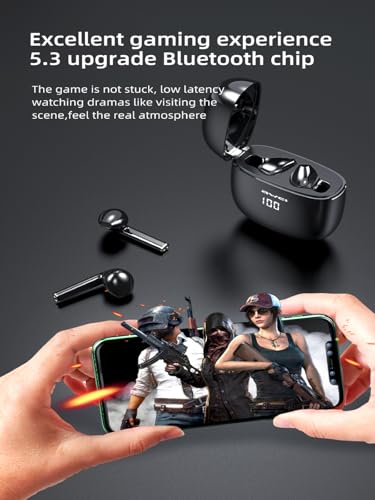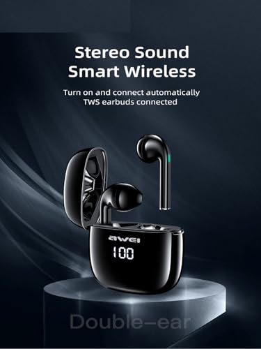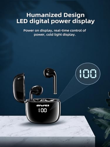 awei - سماعات اذن بلوتوث لاسلكية مقاومة للماء مع علبة للشحن بإضاءة ليد من اوي T28P - اسود، في الاذن