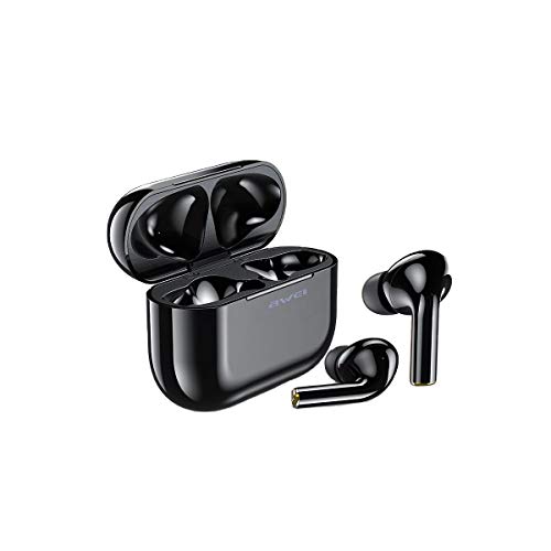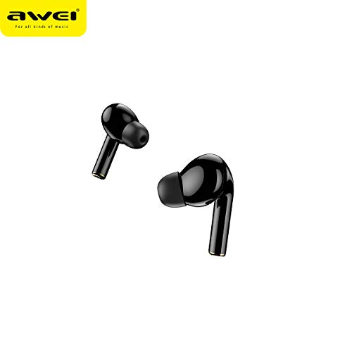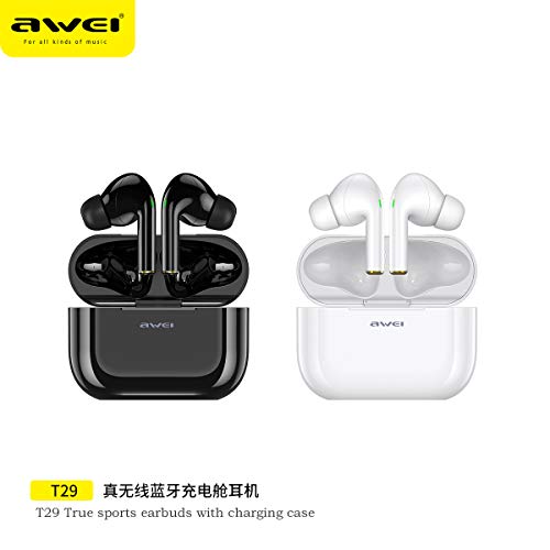 awei - سماعات أذن AWEI T29 لاسلكية حقيقية بتقنية البلوتوث مع ميكروفون وحافظة شحن - أسود