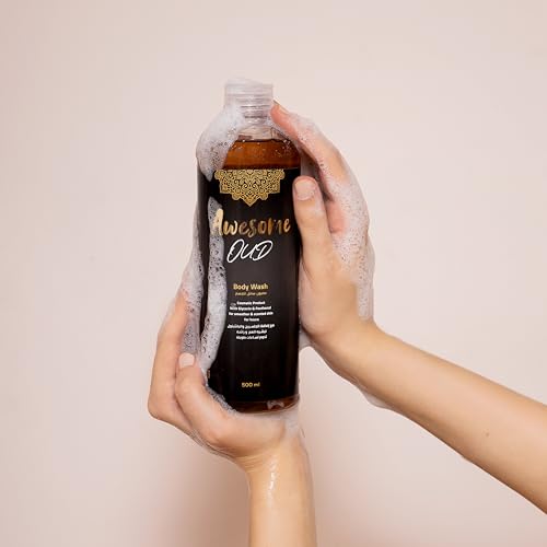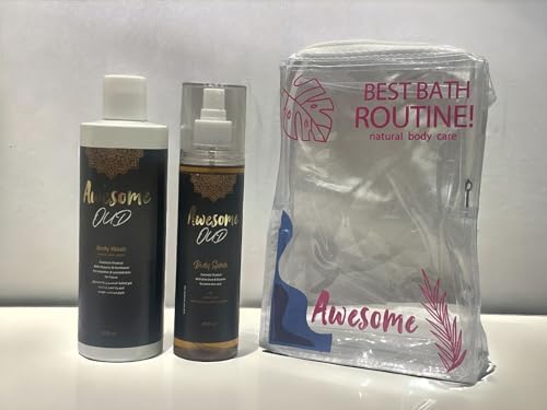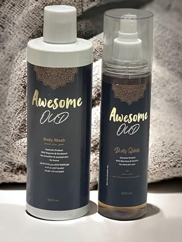 Awesome - مجموعة غسول جسم ومعطر وشنطة مكياج من اوسوم برائحة العود - 750 مل