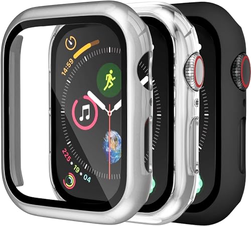 AWH - جراب حماية كامل نحيف للغاية وممتص للصدمات من البولي كربونات المتين متوافق مع ساعة مقاس 38 ملم سلسلة 1 و2 و3 مع شاشة حماية مدمجة (لون أسود) [عبوة من 3 قطع] من ايه دبليو اتش (أسود وشفاف وفضي، للمقاس 45
