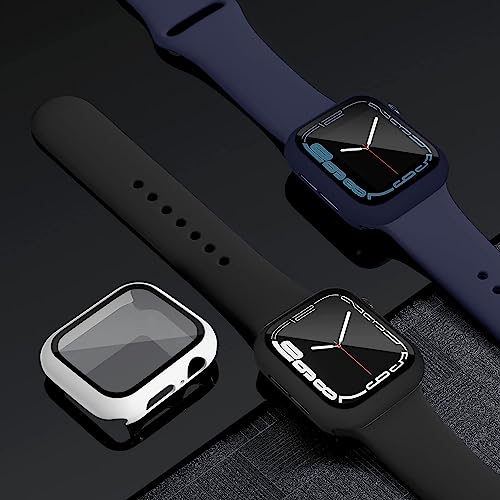 AWH - ايه دبليو اتش حافظة متوافقة مع ساعة ابل - سلسلة اس اي اي ووتش 6 5 4 شاشة حماية مدمجة، حافظة حماية كاملة من البولي كربونات فائقة النحافة من البولي كربونات (44 ملم، اسود/كحلي/ابيض)