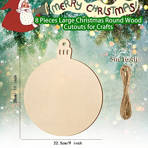 - فواتير خشبية مستديرة: سوف تتلقى 8 قطع من القواطع الخشبية الدائرية الكبيرة، يبلغ مقاس كل قطعة خشبية 22.5 × 28 سم/8.8 × 11 بوصة في الطول والعرض، 5 مم/0.2 بوصة، تأتي مع لفة واحدة من حبل القنب، كمية كافية لك لتزيين عيد الميلاد الخاص بك