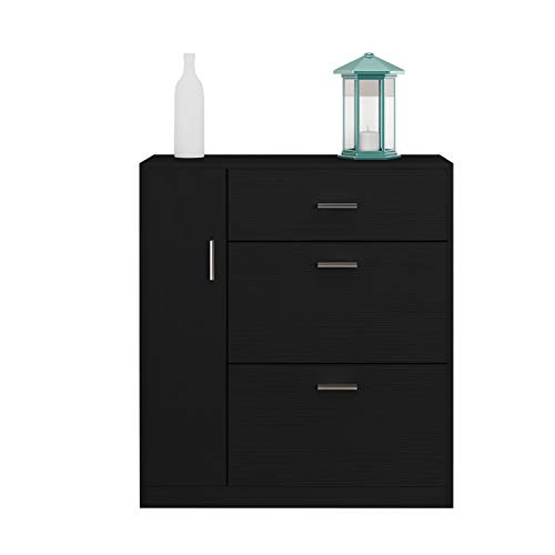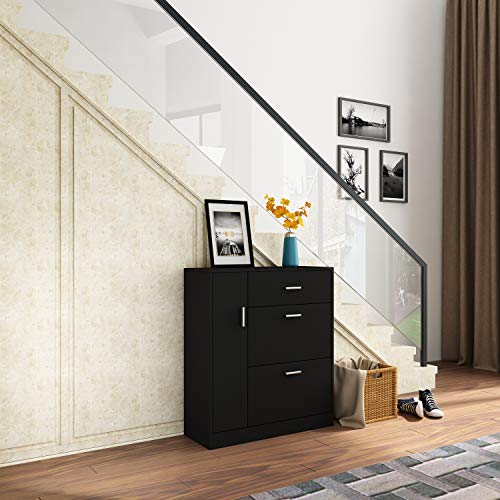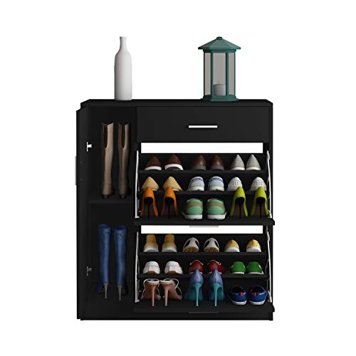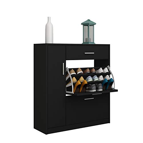 AWOOOD - جزامة تخزين أحذية من يه وود، منظم تخزين أحذية برفوف خشبية، جزامة عصرية لأثاث الممرات، بلون أسود