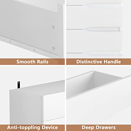 AWQM - اي دبليو كيو اي خزانة 4 أدراج بيضاء لغرفة النوم، خزانة خشبية مكونة من 4 أدراج، وحدة تخزين ملفات واسعة عصرية لغرفة النوم والمكتب وغرفة المعيشة (أبيض)