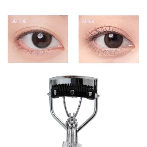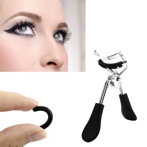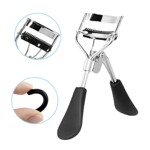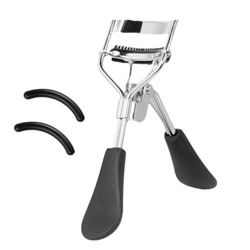 Awyidu - اداة تجعيد الرموش من الستانلس ستيل مع مشط قابل للفصل، مقبض بلاستيكي، تتضمن وسادتين من السيليكون - تعزز مظهر مكياج عينيك (اسود)