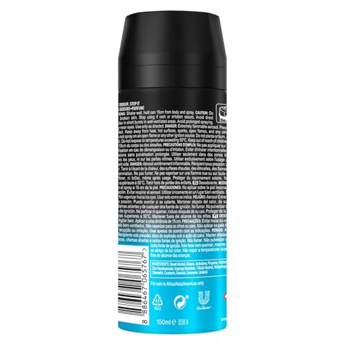 AXE - مزيل عرق للنظافة الشخصية للرجال، بخاخ ايس تشيل برائحة النعناع المنعش فروزن مينت والليمون من اكس (150 مل)