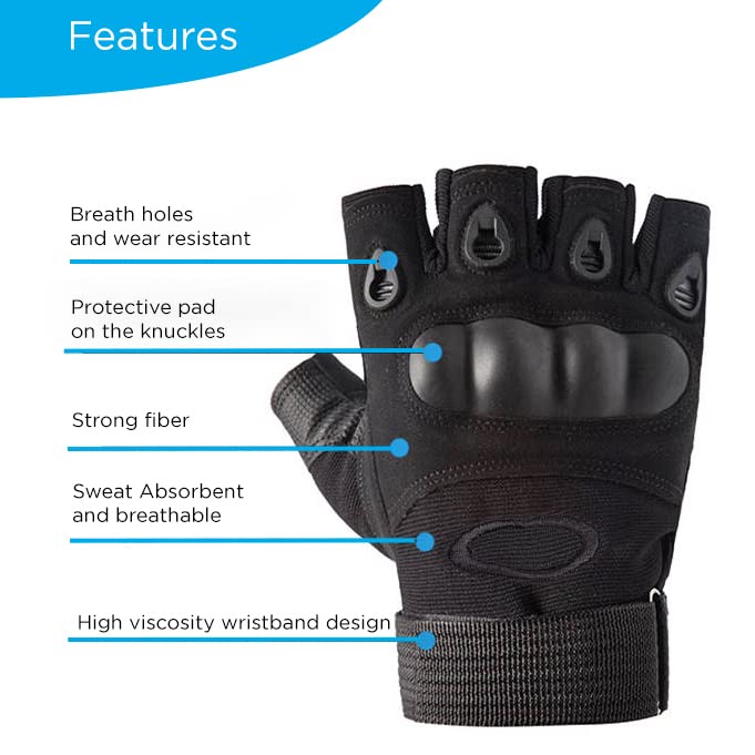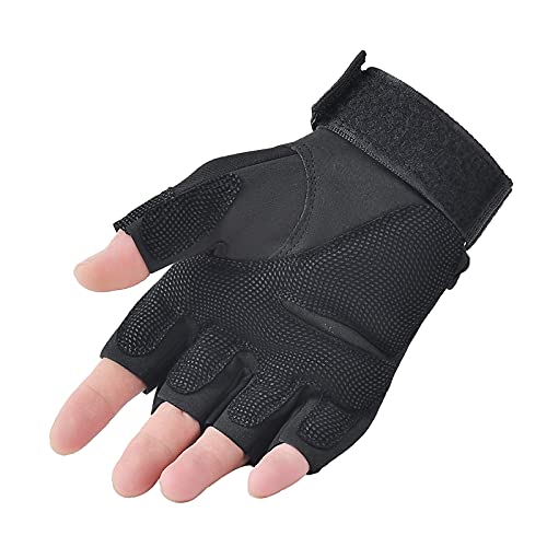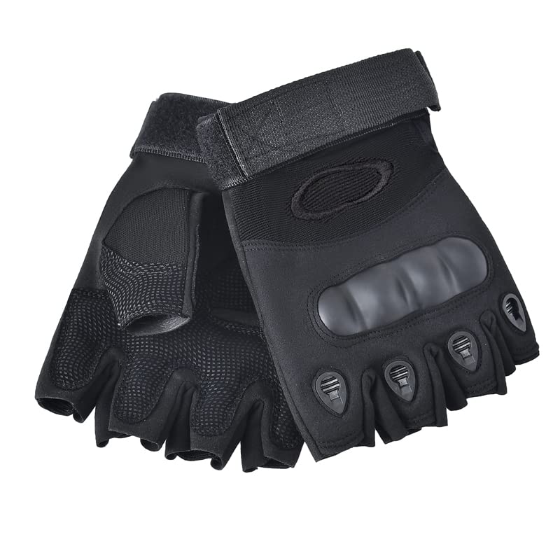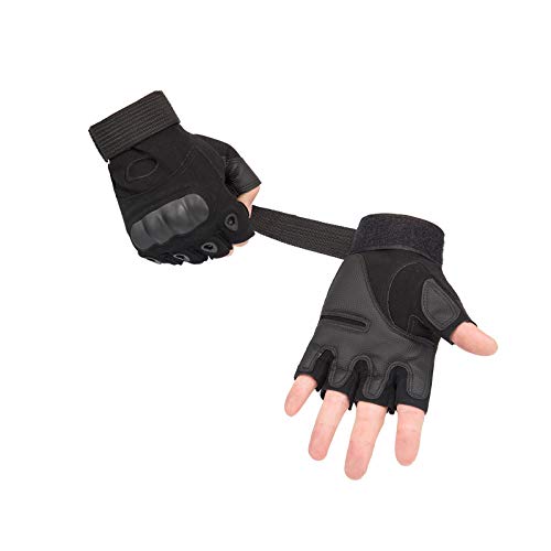 AXELENS - قفازات موتوسيكلات مبطنة ومضادة للانزلاق والرياح للرجال بتصميم عسكري تكتيكي بدون اصابع من اكسلينز، مناسبة للاستخدام في الاماكن المفتوحة لحماية عقل الاصابع