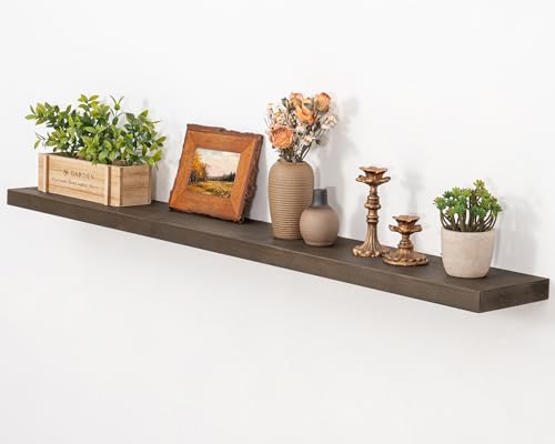 Axeman - أرفف معلقة من الخشب الطبيعي تثبت على الحائط، أرفف جدارية ريفية للحمام وغرفة النوم والمطبخ وغرفة المعيشة، رف خشبي طويل معتق من اكسيمان، مجموعة من قطعتين، رمادي عتيق، 1.3 م