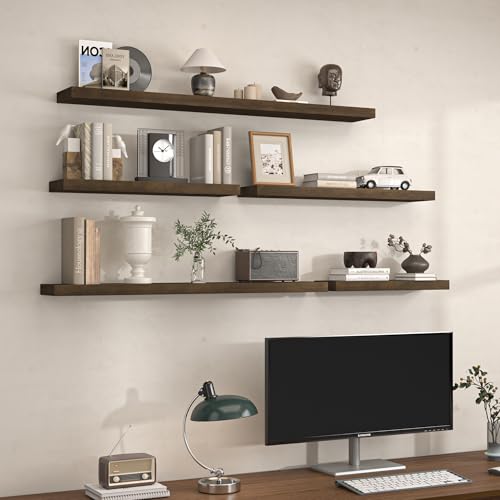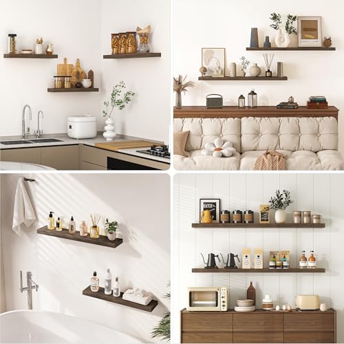 - طقم أرفف معلقة خشبية من قطعتين. 24 سم، مساحة أكبر وأكثر ترتيبًا: يبلغ عمق هذه الأرفف المثبتة على الحائط 18.5 سم وسمكها 3.8 سم وعرضها 1.3 سم، وتوفر مساحة واسعة للكتب والصور والنباتات الصغيرة، مما يجعلها الخيار الأمثل لغرف المعيشة والمطابخ والمكاتب على حد سواء.