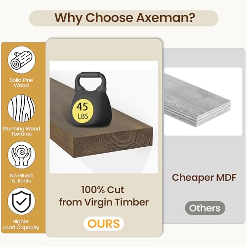 - لماذا تختار لوح خشبي صلب واحد؟ على عكس بعض الأرفف الخشبية الأخرى التي تميل إلى الكسر أثناء الاستخدام، تعتبر هذه الأرفف الخشبية الصلبة المكونة من قطعة واحدة أكثر استقرارًا بنسبة 50% وسعة تحميل مضاعفة من الأرفف المقسمة. تأتي هذه الأرفف لجدار الغرفة مع دعامات معدنية سميكة شديدة التحمل، صممت هذه الدعامات المخفية لتوفير دعم موثوق لأرففك.
