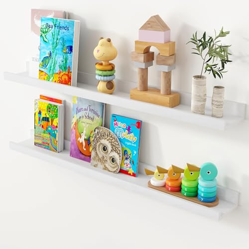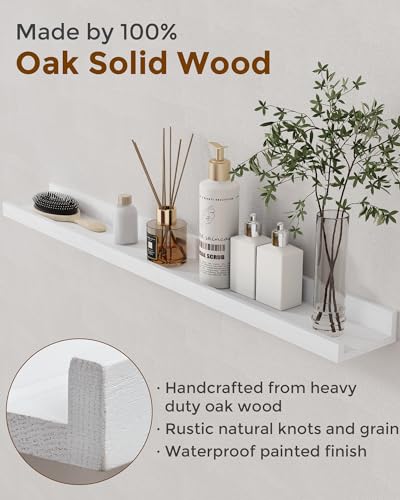 Axeman - ارفف عائمة من خشب البلوط مقاس 36 انش من اكسمان، مجموعة من 2 ارفف خشبية صلبة مع حافة لتزيين الحائط والتخزين وغرفة النوم وغرفة المعيشة والحمام والمطبخ، ابيض