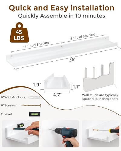 - تركيب بدون عرق: يأتي كل رف مزودًا بجميع الأدوات اللازمة وتعليمات واضحة للتركيب الخالي من المتاعب على جدرانك. يخلق التصميم العائم مظهرًا سلسًا وانسيابيًا، مما يجعله يبدو كما لو أن الأرفف معلقة دون عناء، مما يضيف لمسة من الرقي العصري إلى الجزء الداخلي الخاص بك.