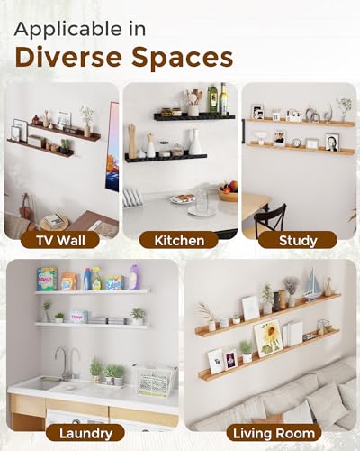 - تصميم حافة الصورة: توفر أرفف الحائط العائمة هذه مساحة واسعة لعرض الصور الفوتوغرافية أو الأعمال الفنية أو النباتات الصغيرة أو المقتنيات دون أن تطغى على مساحة الحائط. يشتمل تصميم الحافة على شفة رقيقة وأخدود ضحل خلف الشفاه، مما يثبت الأشياء بأمان في مكانها مع الحفاظ على جمالية نظيفة ومرتبة.