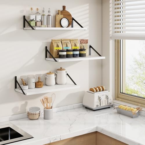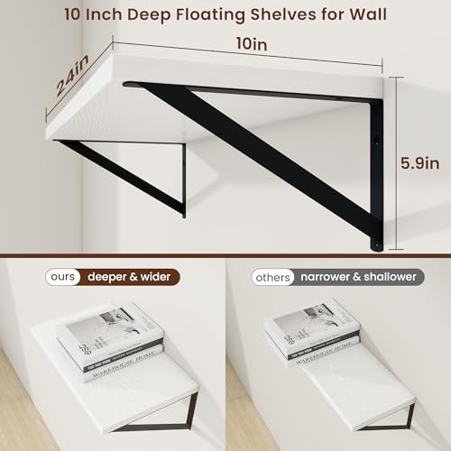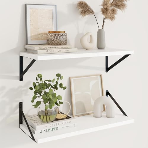 Axeman - أرفف عائمة بيضاء للحائط بعرض 60 سم × عمق 25 سم، مجموعة من 2 قطعة - أرفف حائط عريضة بيضاء لغرفة المعيشة والحمام وغرفة النوم من مكسمان
