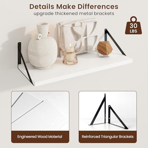 - مواد ودعامات مطورة - تستخدم أرفف الحائط الخاصة بنا ألواح خشبية هندسية سميكة مقترنة بدعامات مثلثة، تجمع بين الجمال وقوة التحمل. صُنعت هذه الأرفف لتحمّل اختبار الزمن، ومقاومة التشوه والكسر مع توفير دعم لا مثيل له لمقتنياتك.