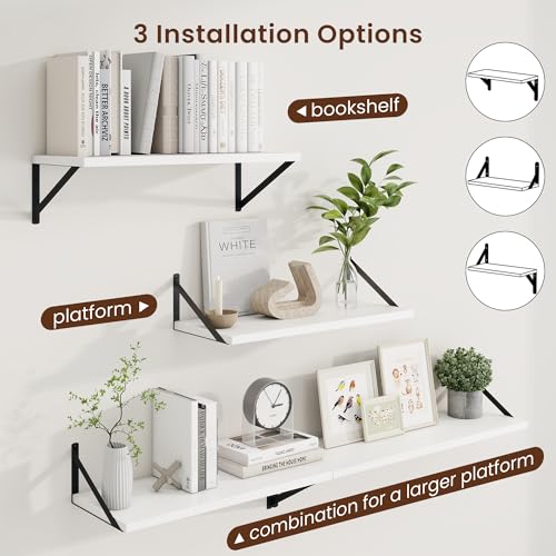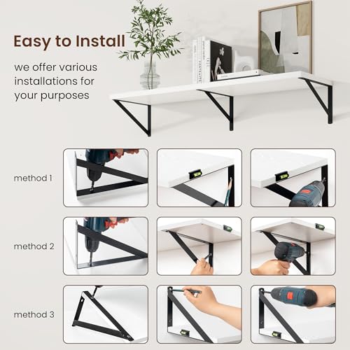 - استخدام متعدد الأغراض - أطلق العنان لإبداعك واكتشف الإمكانيات التي لا حصر لها لأرفف الحائط العائمة الخاصة بنا. يمكن ترتيب الدعامات أسفل اللوحة لتحويل الرفوف إلى رف كتب أو طاولة بجانب السرير. اجمع بين ألواح متعددة لصنع مساحة واسعة تناسب نمط حياتك