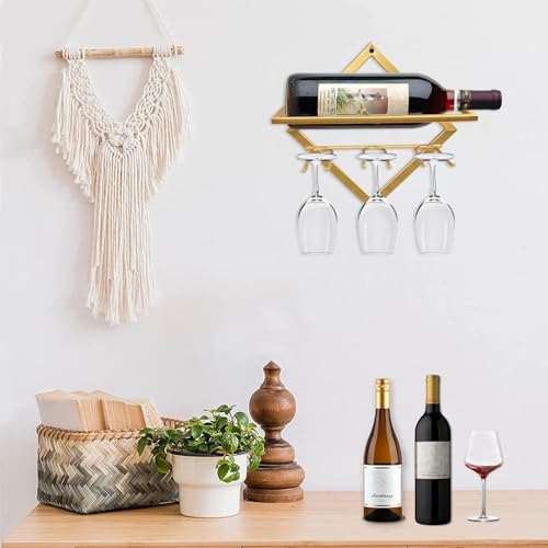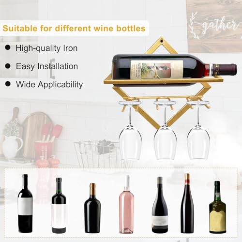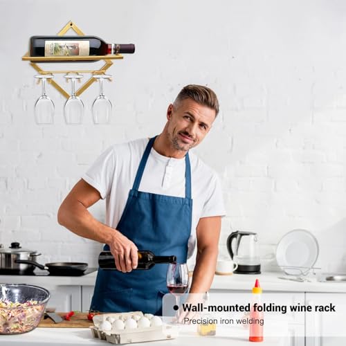 AXIYIBZI - حامل مشروبات معدني يثبت على الحائط من اكسيبزي، منظم رفوف مشروبات قابل للطي مع 3 حوامل كؤوس، شماعة عرض زجاجات المشروب مع مسامير للمنزل والمطبخ والمقهى وديكور الحائط