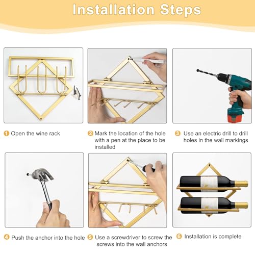 - 【مادة فاخرة】رف زجاجات المشروبات مصنوع من معدن قوي، وخفيف الوزن، يتميز بلحام قوي، وقدرة تحمل قوية، وهو سهل الفك والنقل. يُظهر النمط العصري جوًا فنيًا فريدًا.
