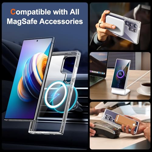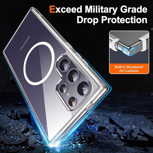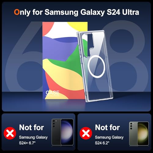 Axtcool - جراب حماية فائق الشفافية شديد التحمل ومضاد للصدمات متوافق مع ماج سيف ، مغناطيسي شفاف ورفيع مضاد للاصفرار لموبايل سامسونج جالاكسي S24 الترا للبالغين من الجنسين