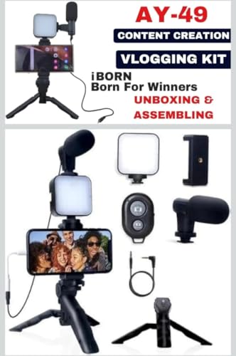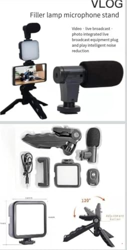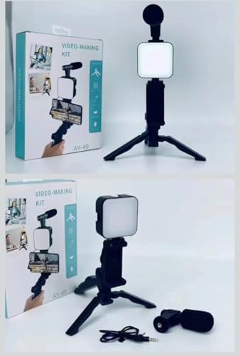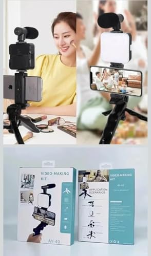 Generic - حامل ثلاثي القوائم للفيديو، مع ميكروفون وإضاءة للبث المباشر، موديل AY-49، أسود
