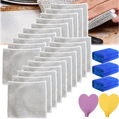 ayattecy - قطع تنظيف الاطباق السلكية ستيلايا من اياتيكي، متعددة الاغراض للاستخدام الرطب والجاف، قماش اطباق سلكي غير قابل للخدش، فرشاة تنظيف مزدوجة من الستانلس ستيل، خرقة اطباق لغسل الاطباق (20 قطعة)