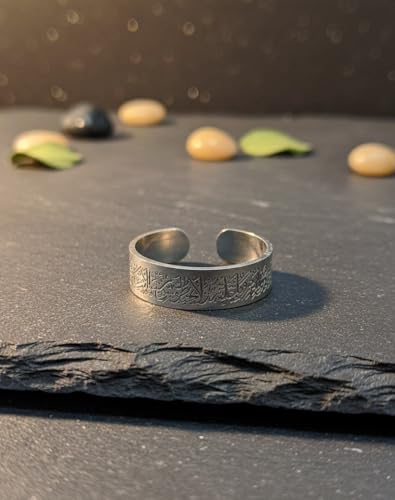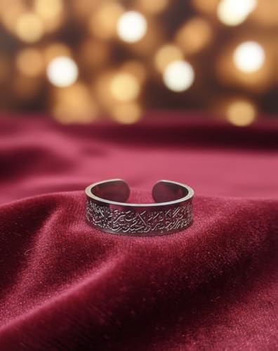 Generic - خاتم بطبعة آية الكرسي من الفولاذ مقاوم للصدأ قابل للتعديل بطبعة قرآن كريم بالخط العربي لعيد الأضحى ومحمد مبارك، مجوهرات إسلامية من حاجات بنات ستور