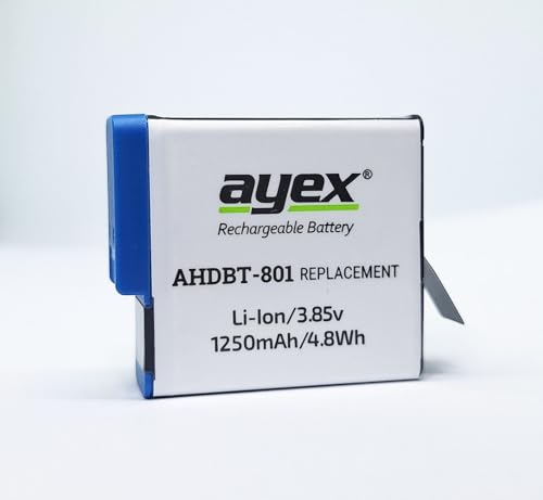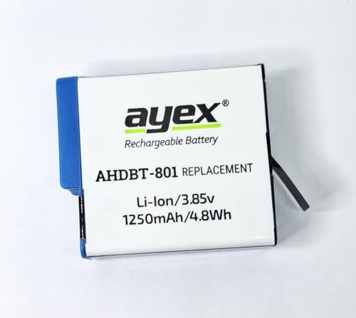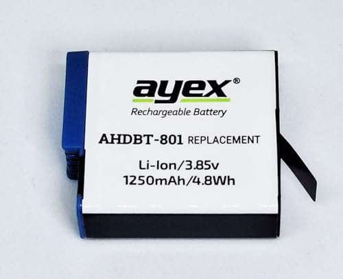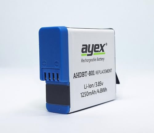 ayex - بطارية AHDBT-801 متوافقة مع كاميرا جوبرو هيرو 8/ 7/ 6/ 5 من ايكس، 3.85 فولت