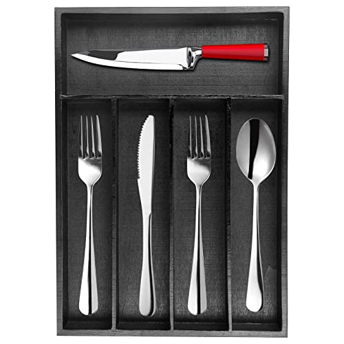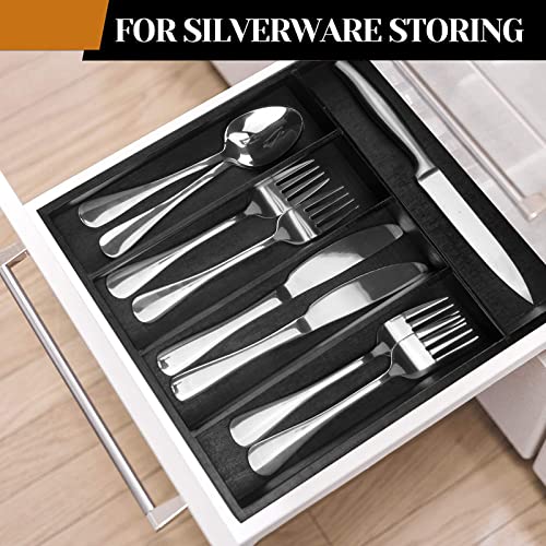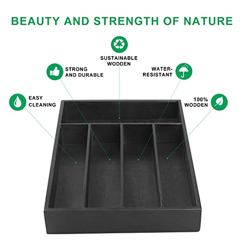 - يمنع الخشب الروائح: صينية تنظيم درج المطبخ الخشبية مصنوعة من الخشب بنسبة 100%. حامل أدوات المائدة الأسود لأدوات المطبخ مستدام، ويحافظ على نظافته بعد الاستخدام.