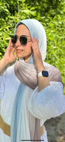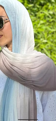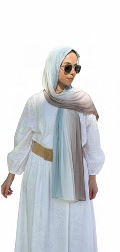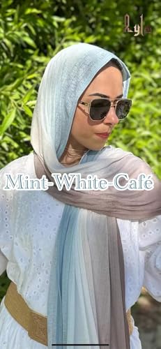 Ayla - ايلة اوشحة - سكارف من مزيج قطني، ازرق مينت/ابيض ناعم/بيج رملي، 200 × 70 سم، مجموعة كوستال، نمط متدرج بدون خياطة