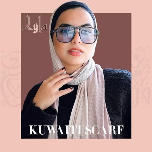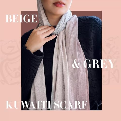 Ayla - ايلة اوشحة - وشاح من مزيج القطن المصري والليكرا بنمط متدرج باللونين البيج والرمادي، قماش جيد التهوية وقابل للتمدد، 200 × 70 سم