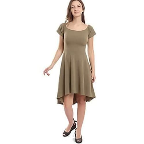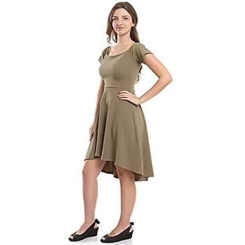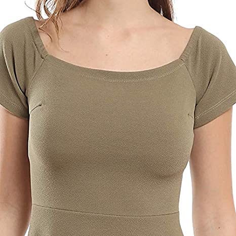 Generic - فستان نسائى اية لاين قصير دون اكتاف لون بيج
