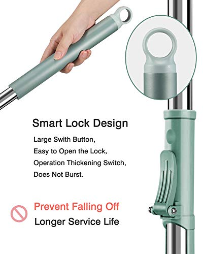 - 【رأس مساحة موب دوارة بزاوية 360 درجة وتصميم قفل سهل الإغلاق】يمكن تمديد المقبض القابل للفصل إلى 1.3 م، مساحة تنظيف موب برأس دوار ه بزاوية 360 درجة بحيث يمكن الوصول إلى معظم الأماكن التي يصعب الوصول إليها، مثل تحت الأريكة أو فوق النافذة أو بعض زوايا المطبخ. بفضل تصميم القفل السريع الذكي، يمكن إغلاق الجزء ذاتي العصر الموجود في المساحة بحيث لا يسقط أثناء التنظيف ويعيق عملك.