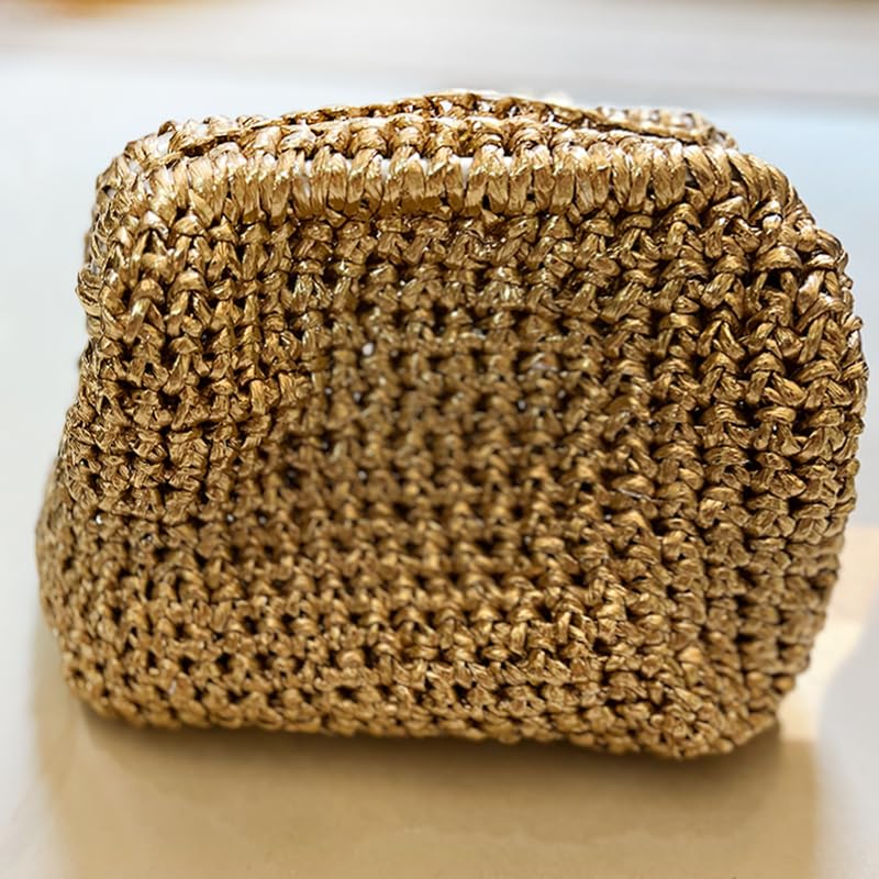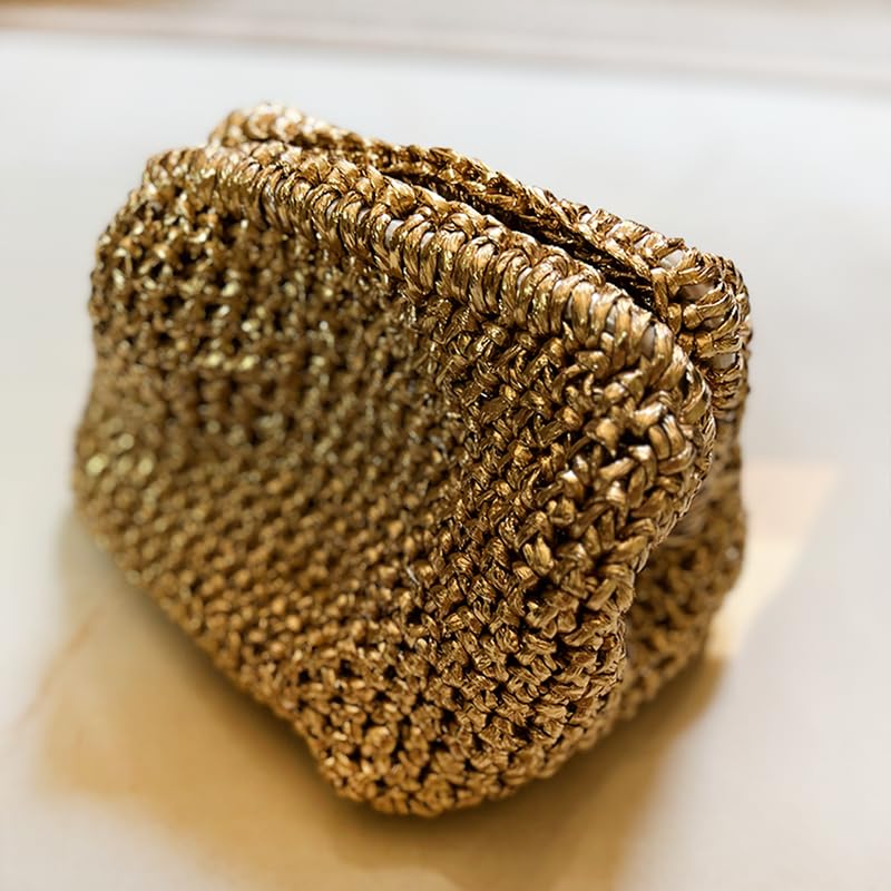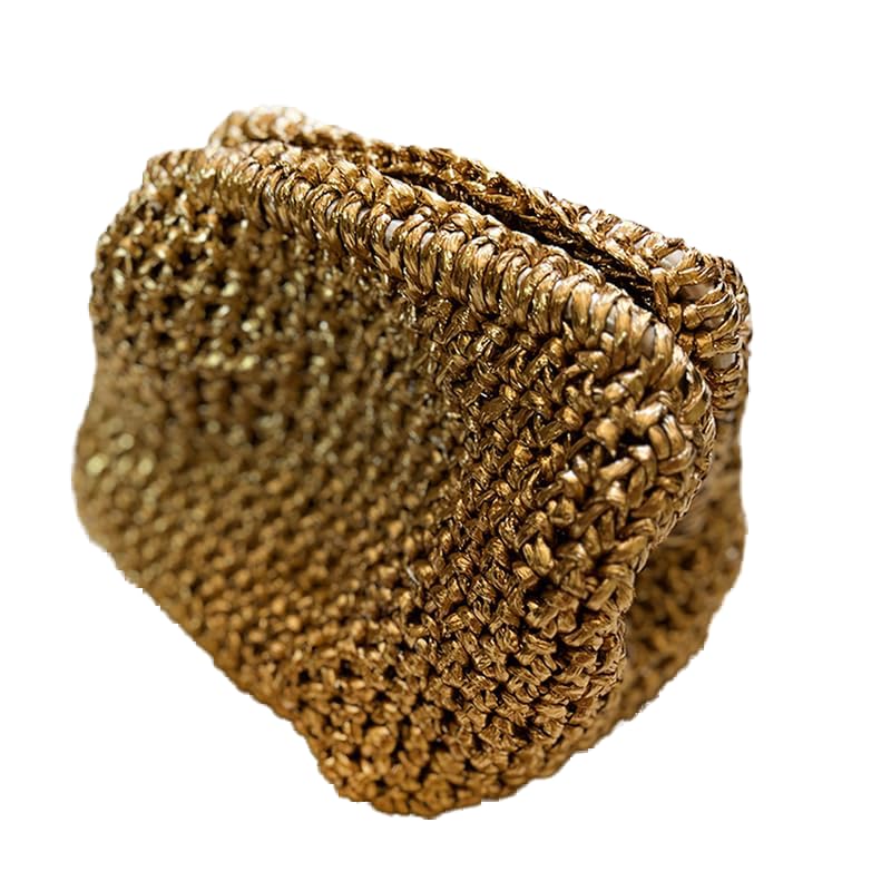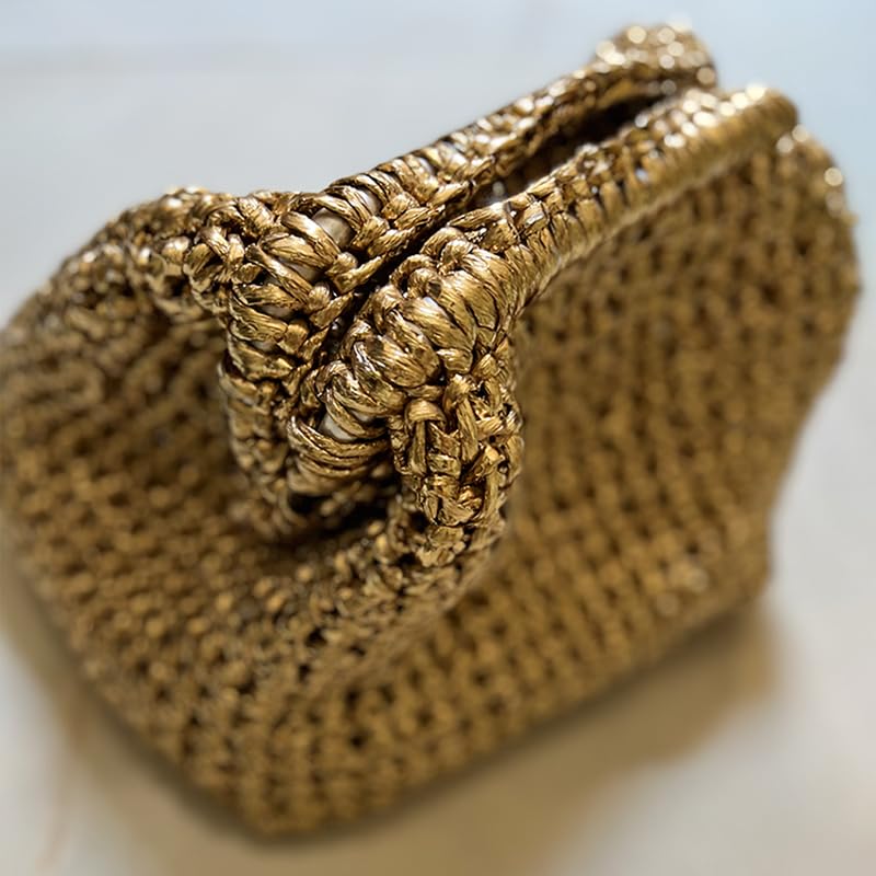 - حقيبة يد كروشيه ذهبية معدنية جميلة تتميز بنمط محبوك مكتنز ولمسة نهائية مميزة لمظهر عصري وأنيق