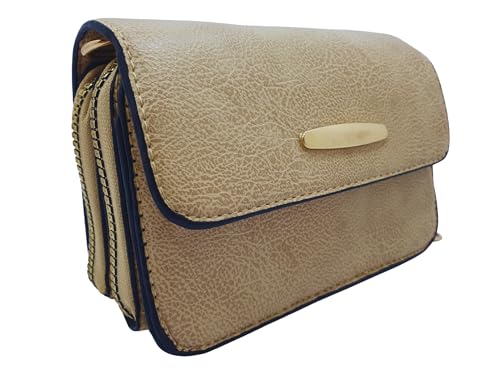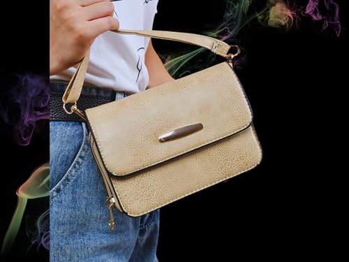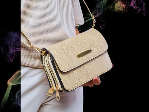 AYSLE - شنطة كروس من الجلد للنساء من ايسل 1612، شنطة كتف بحزام مثبت، تصميم عصري وانيق، ابعاد 12 × 18 × 8 سم (لون بيج ايه)
