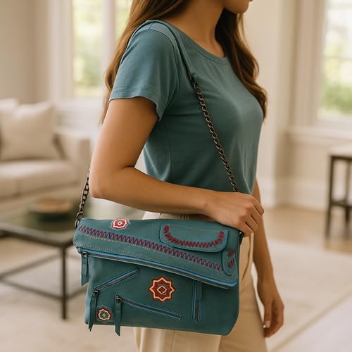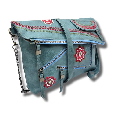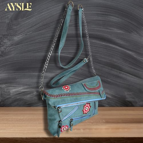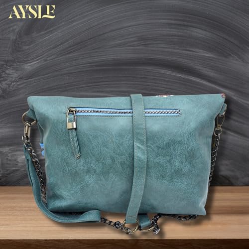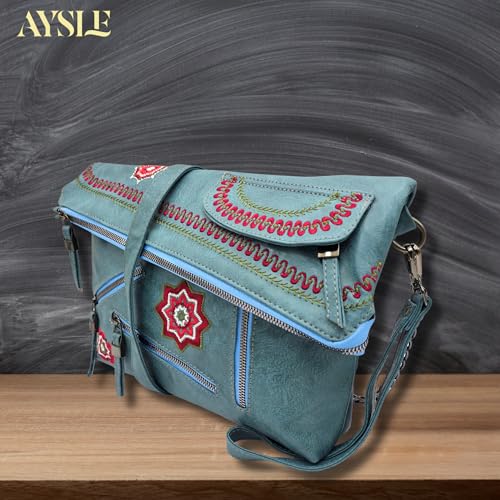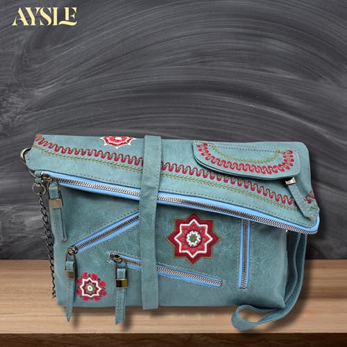 AYSLE - شنطة كتف وكروس جلد فاخرة للنساء من ايسل، شنطة بتطريز يدوي أنيق خفيفة الوزن ومتوفرة في 12 لون، حجم 23 × 33 × 9 سم، موديل 1617