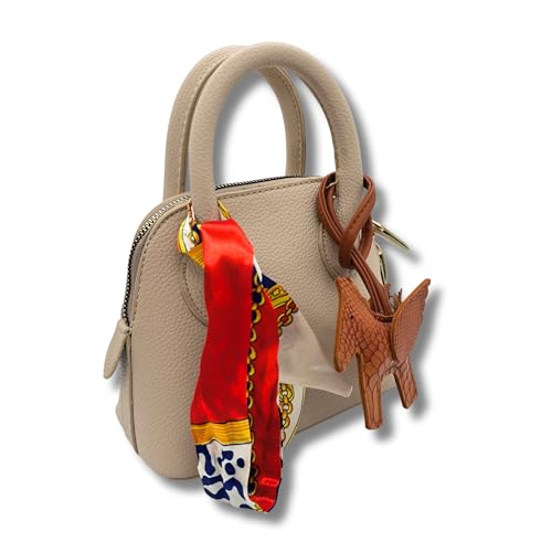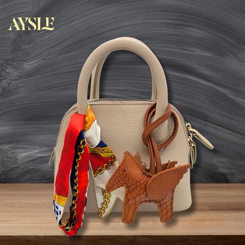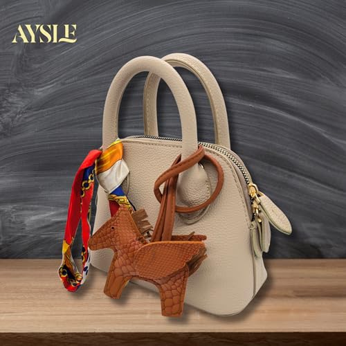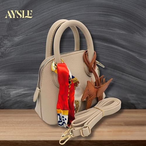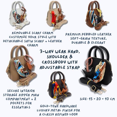 AYSLE - شنطة كتف صغيرة من الجلد المحبب للنساء من ايسل 1633، شنطة كروس بمقبض علوي ووشاح فني قابل للإزالة وحلية جلدية مع قطع معدنية ذهبية فاخرة، متوفر بـ 12 لون، مقاس 15×20×10 سم