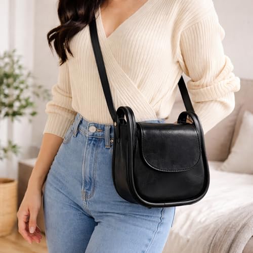 AYSLE - شنطة كتف وكروس جلد للنساء من ايسل 1641 | اغلاق مغناطيسي | لمسة نهائية ناعمة | قطع معدنية ذهبية اللون | 12 لون | 18×20×11 سم