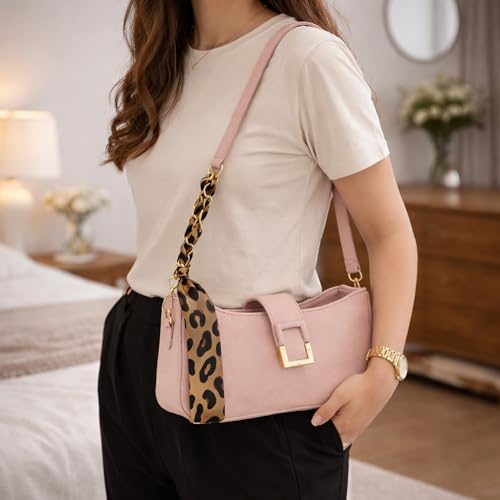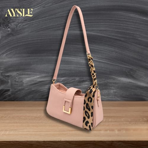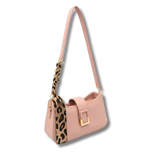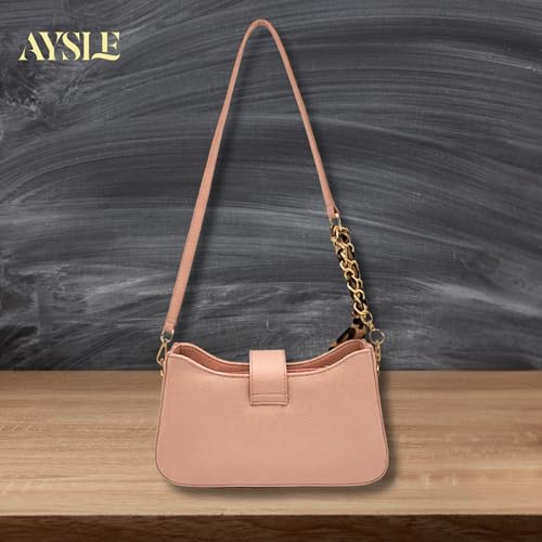 AYSLE - شنطة جلد للكتف وكروس من أيسل 1645 للنساء، تصميم بحزام سلسلة وسكارف، قفل مغناطيسي، قطع معدنية ذهبية، 12 لون بأبعاد 15×25×8 سم