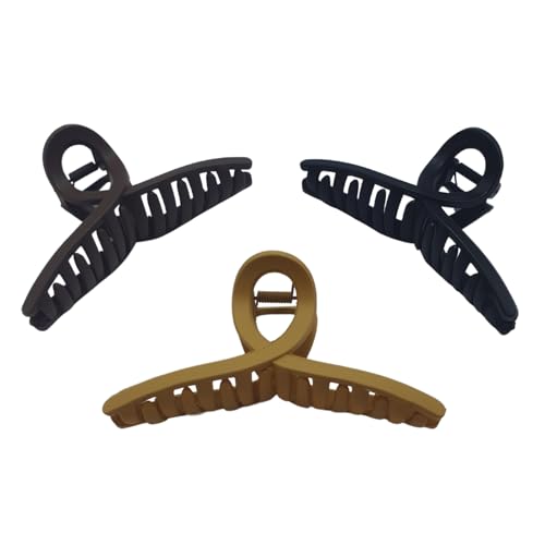 AYSLE - مشابك شعر من تشكيلة زوك للنساء والبنات من ايسل - مشابك كبيرة غير قابلة للانزلاق للشعر الكثيف والرقيق - إكسسوارات شعر قوية التثبيت - 3 قطع - (زوك - أسود وبني وكوفي)