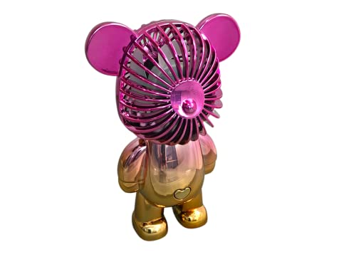 AYULI - مروحة صغيرة محمولة من ايولي، مروحة يدوية أو مكتبية، قابلة لإعادة الشحن بمنفذ USB بحجم الجيب، مروحة لطيفة تعمل بالبطارية مع وظيفة 3 سرعات للمطبخ والنساء والأطفال للسفر والتخييم (بينك-ذهبي)