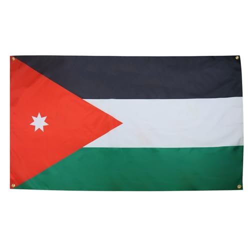 AZ FLAG - علم الأردن مزود بـ 4 فتحات تعليق للبلكونة أو الحائط من ايه زد فلاج، 1.5 × 0.9 م