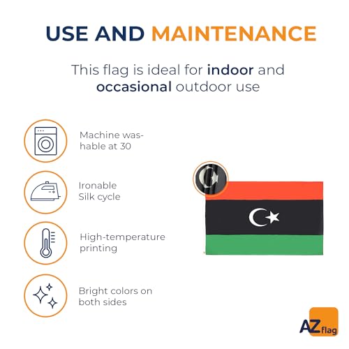 AZ FLAG - علم دولة ليبيا عالي الجودة مقاس 1.50 م × 90 سم من البوليستر 100% مع فتحات معدنية مدمجة بوزن 110 جم من ايه زد فلاج