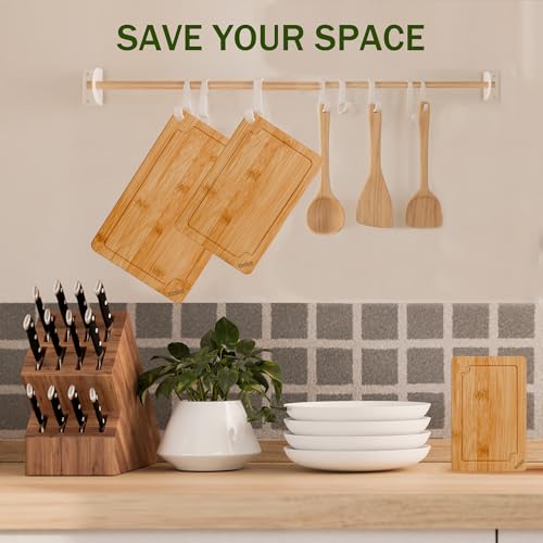 - 【تصميم سهل التنظيف وصديق للبيئة】لوح التقطيع مصنوع من الخيزران الطبيعي المضاد للميكروبات، هذه الألواح تقاوم البقع والروائح ما عليك سوى غسله يدويًا بصابون خفيف ووضع زيت آمن غذائيًا شهريًا للحفاظ على المتانة - مثالي للعائلات المشغولة أو عشاق إعداد الوجبات أو المنازل المهتمة بالبيئة