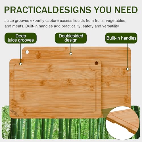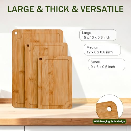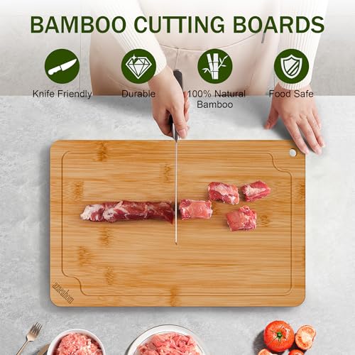 Azaeahom - مجموعة ألواح تقطيع من الخيزران للمطبخ مكونة من 3 قطع من ازاهيوم، مجموعة ألواح تقطيع خشبية مع أخاديد عصير ومقابض مدمجة، للحوم والخضروات