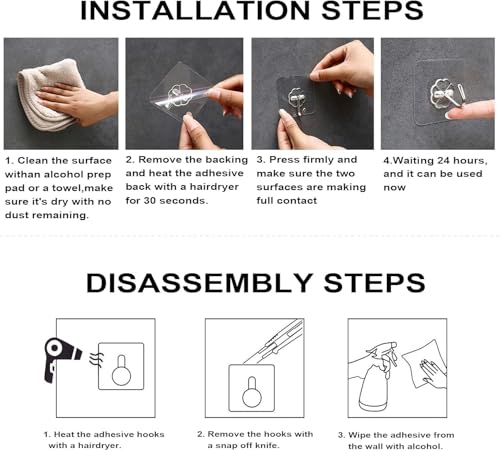 - لمسة نهائية أنيقة وغير مرئية: تمتزج ملصقات خطاف الحائط الشفافة بسلاسة مع ديكور منزلك. رائعة للديكورات الداخلية الحديثة والبسيطة التي تبحث عن فائدة خالية من الفوضى.