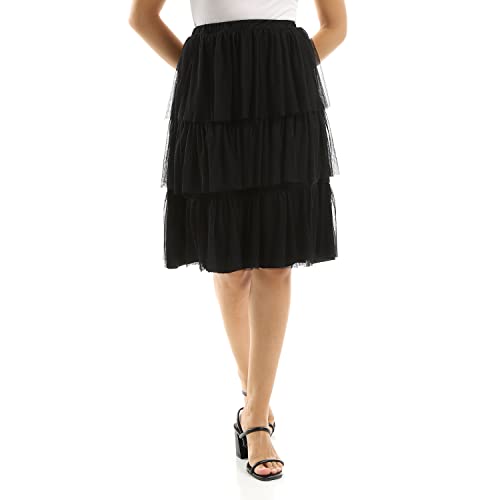 Azeez - جيبة تول منفوشة كرانيش بلون اسود من عزيز, أسود, S-M
