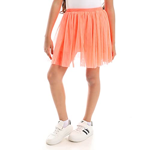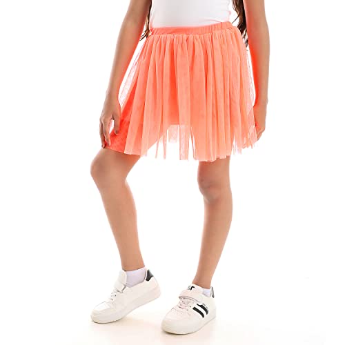Azeez - تنورة بتصميم منفوش صغيرة من التول للاطفال من عزيز، بلون برتقالي نيون وبرتقالي